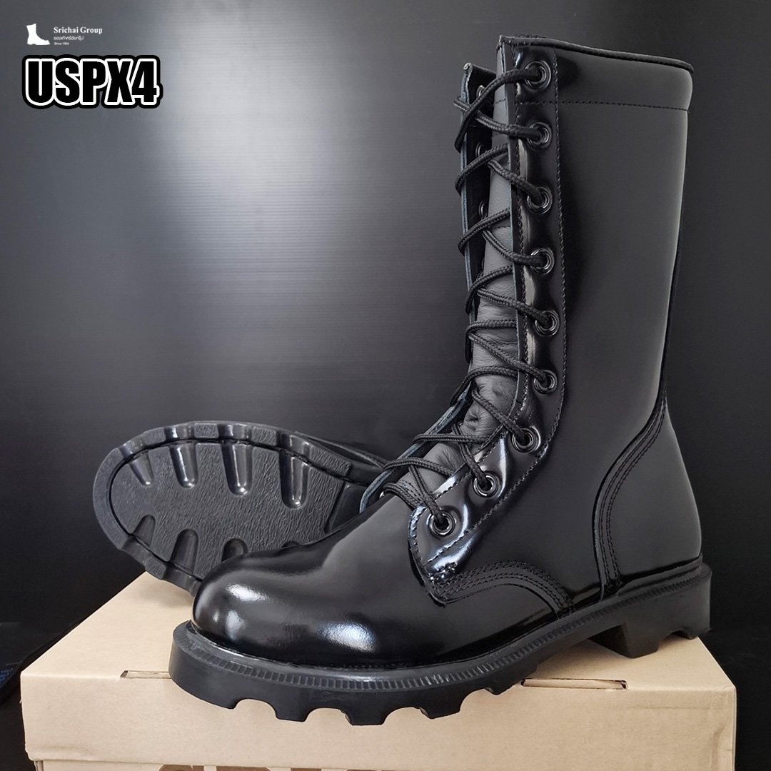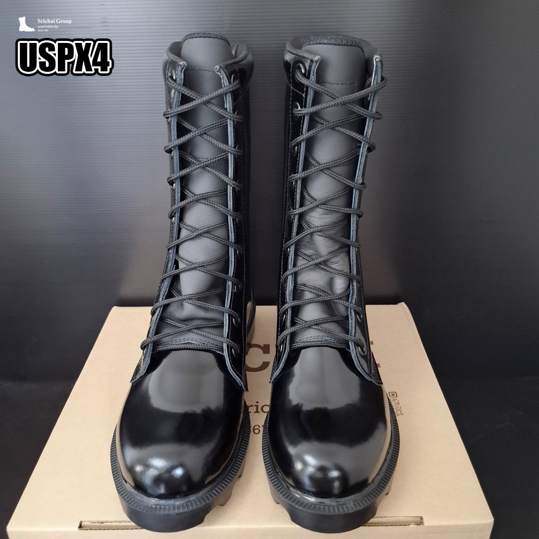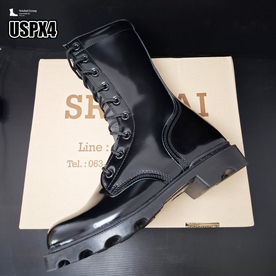 รองเท้าคอมแบท ทรง US หนังขัดมันเกรดพรีเมี่ยม กระบอกสูง 10 นิ้ว หูตาไก่ 9 รู ลิ้นหนังคลุมข้อเท้า ซับด้านในนุ่ม ขอบบุนวม พื้นโรเสิร์ท ระยะเวลารอสินค้าประมาณ 30 วัน