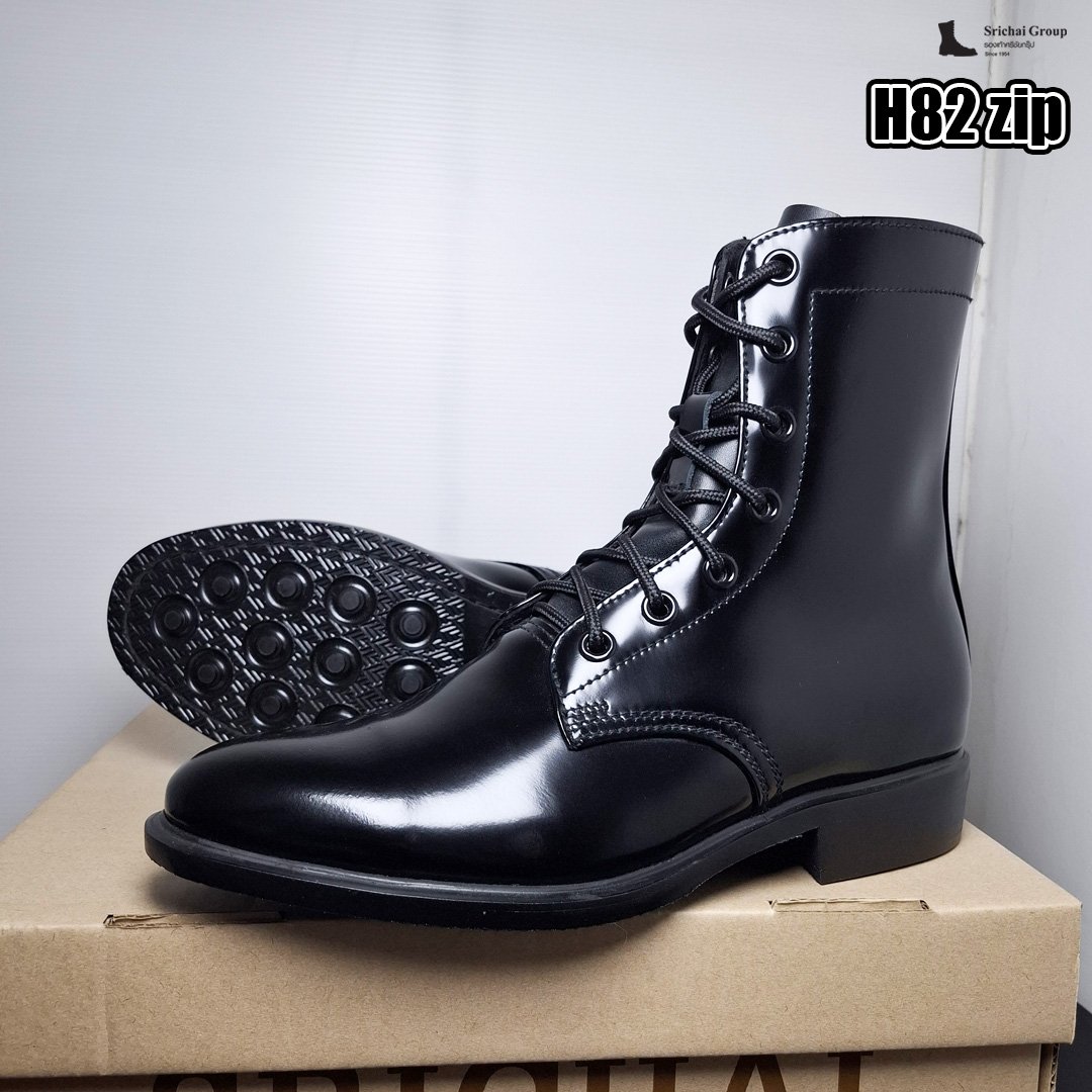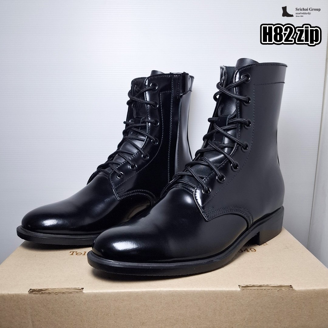 รองเท้าฮาฟกศ. หนังขัดมันเกรดพรีเมี่ยม สูง 8 นิ้ว ใส่ซิปข้าง ซับด้านในนุ่ม พื้นยาง
