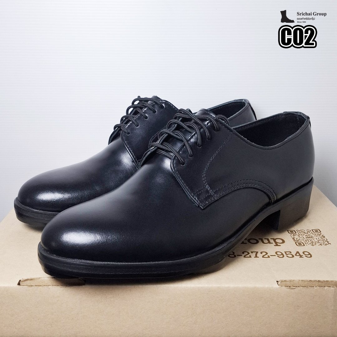 รองเท้าคัทชู หนังขัดมัน ทรงเครื่องแบบ พื้นยางถูกระเบียบ