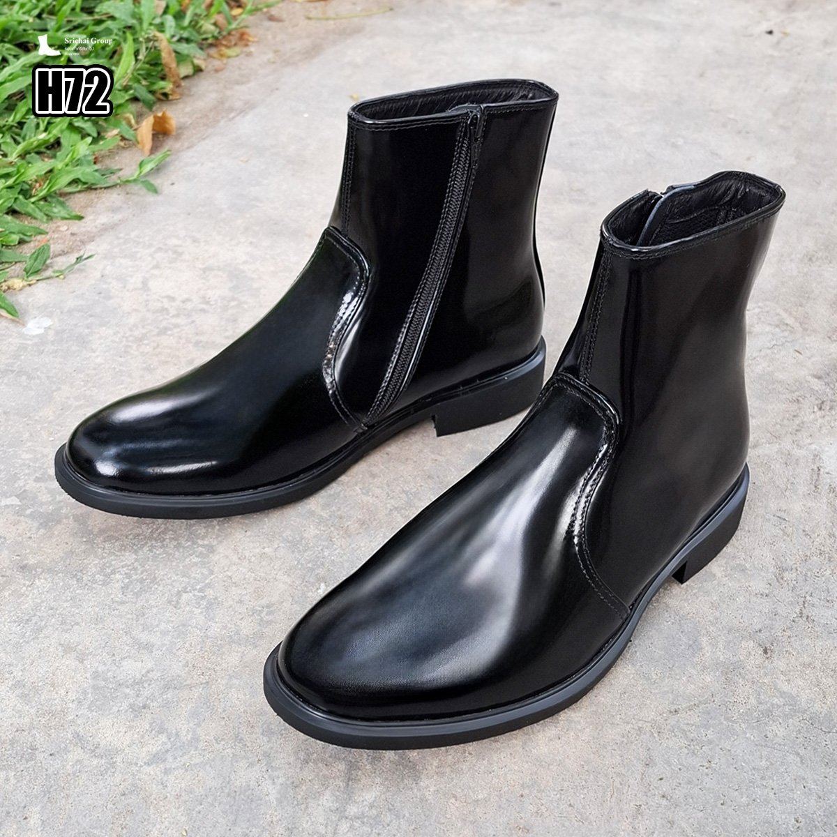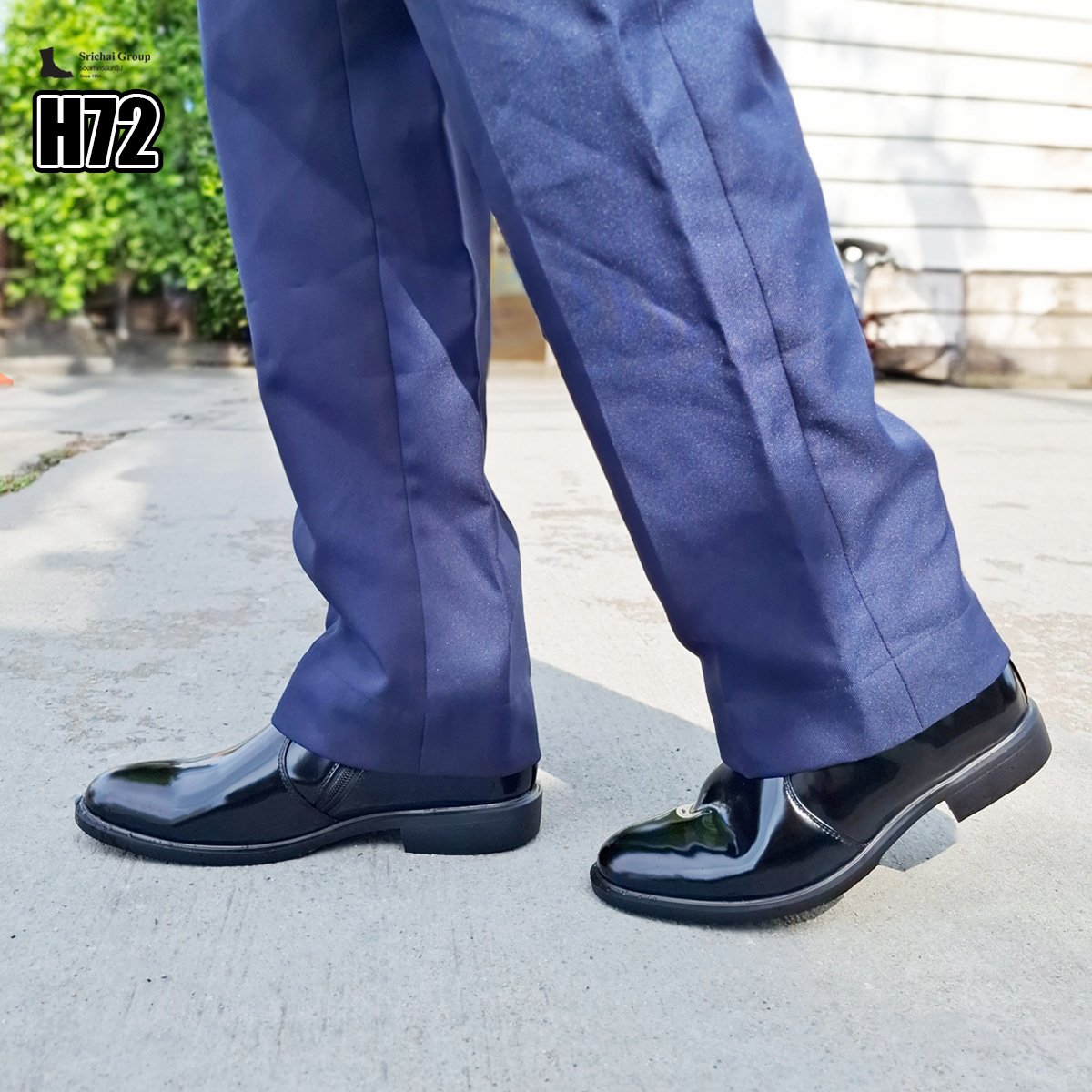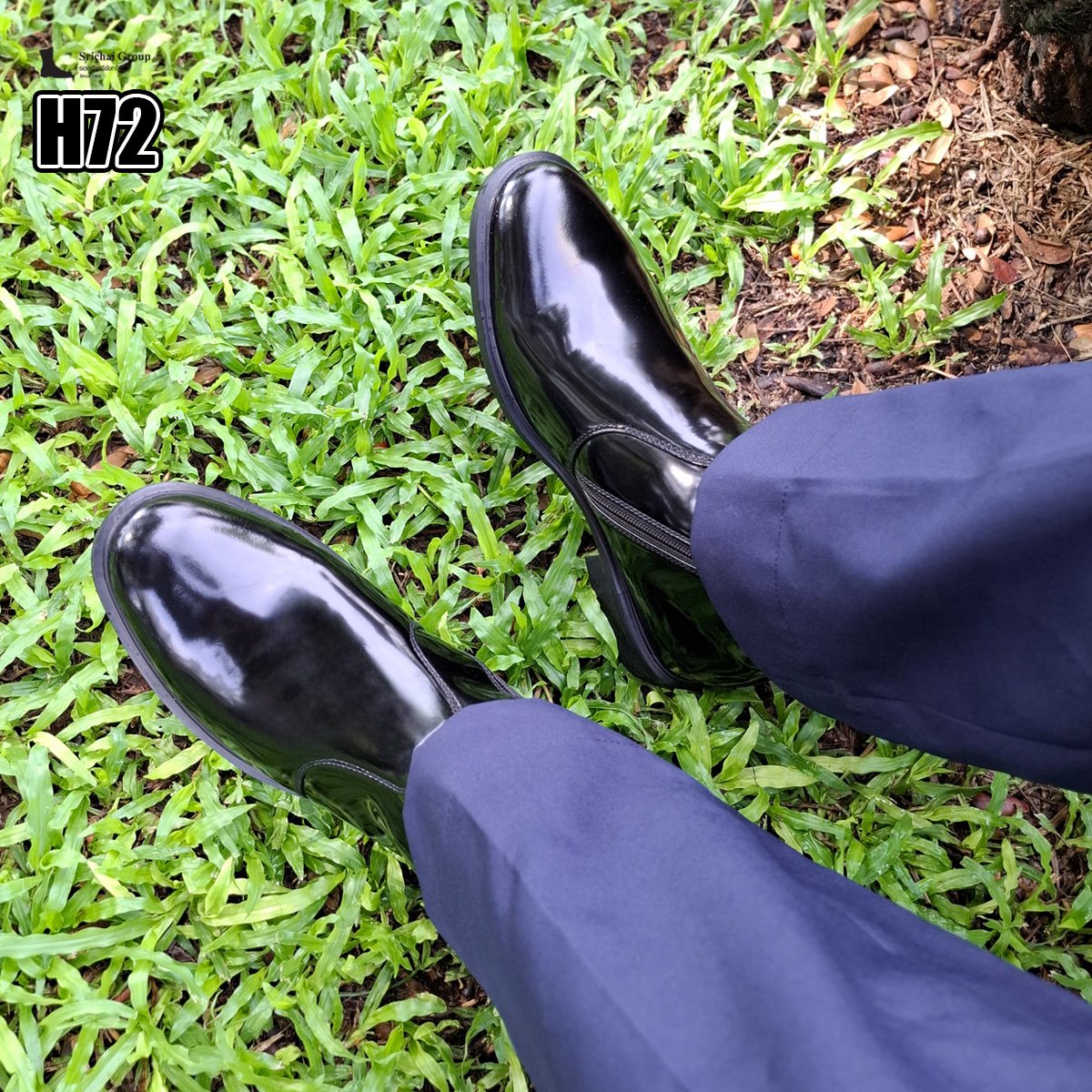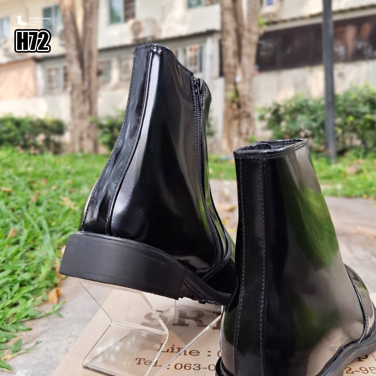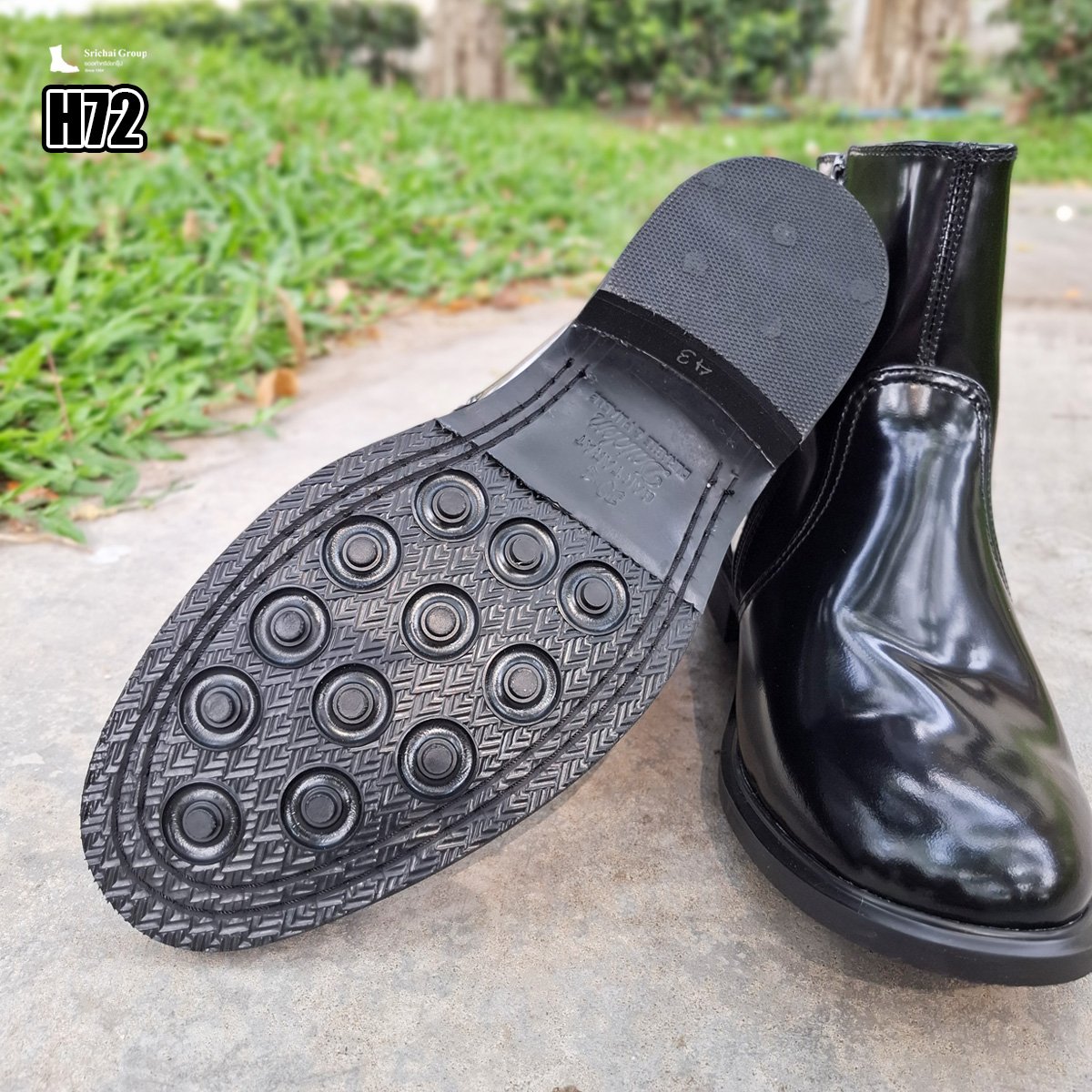รองเท้าฮาฟ หนังขัดมันเกรดพรีเมี่ยม สูง 7" ทรงเครื่องแบบถูกระเบียบ พื้นยาง